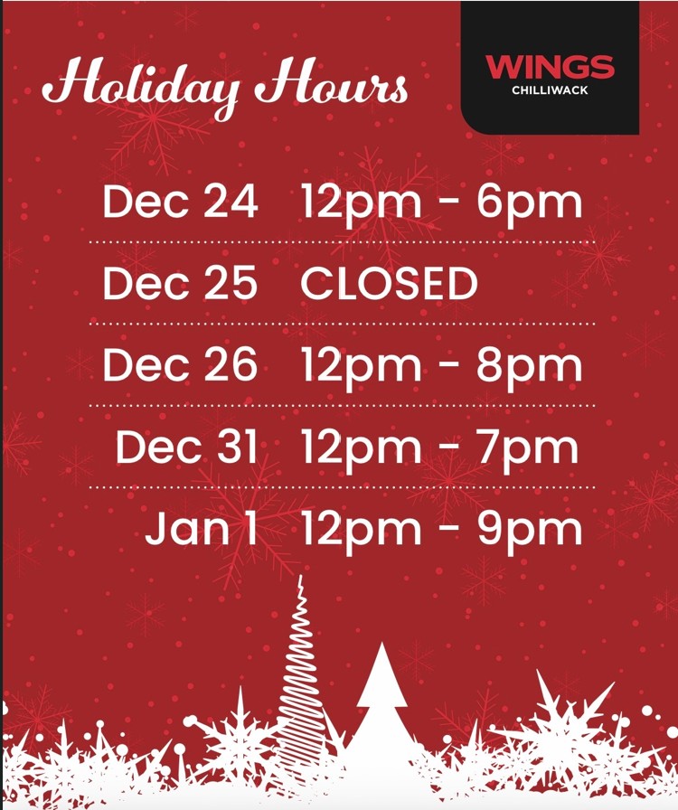 $12 Wings Special ALL DAY (Dine-in Only) – One flavour per order, beverage purchase required.