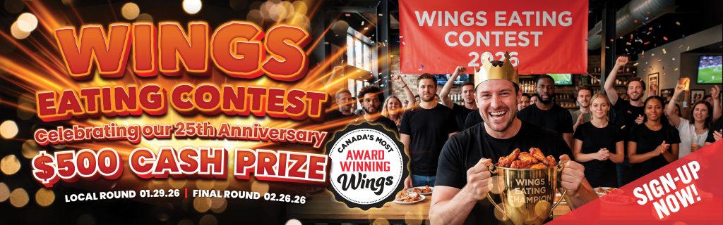 After six years away, our most iconic competition returns this winter with local qualifying rounds across all WINGS locations, followed by an epic Final Championship at WINGS Surrey. Think you’ve got what it takes to become the next WINGS Eating Champion?